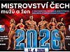 V neděli 12. dubna Vás srdečně zveme na Výstaviště Lysá nad Labem na Mistrovství Čech mužů a žen 2026. Vypsány byly kategorie kulturistiky, klasické kulturistiky, physique, classic physique, wellness fitness, bodyfitness a bikiny fitness. Podrobné informace jsme Vám již přinesli v průběhu předešlých týdnů v pozvánce a propozicích. Zajímá Vás, kdo bude bojovat v jednotlivých kategoriích?